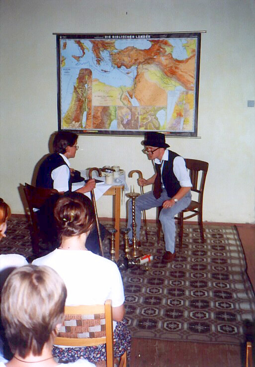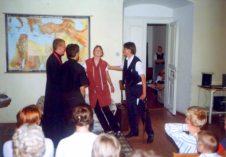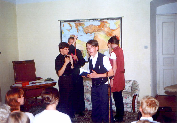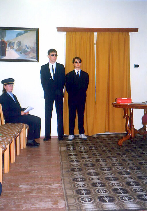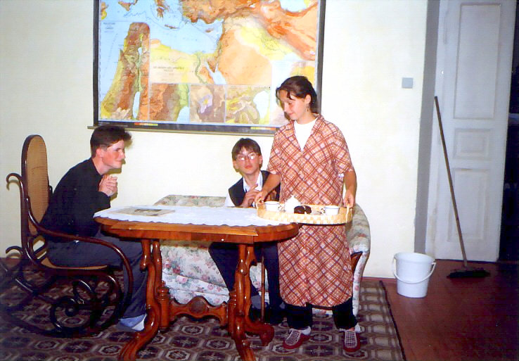 Vystoupení se konalo 29. června 1999. Hlavní postavu detektiva Revolvera hrál přední kostelecký cimrmanolog Vojta Kábrt. Za jeden večer jsme zvládli dvě představení. Muselo se trochu improvizovat, protože detektiv si zapoměl hlavní rekvizitu - špendlík - a zatímco se v zákulisí hledala, Revolver musel svou řeč natahovat, co to jen šlo.