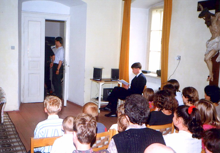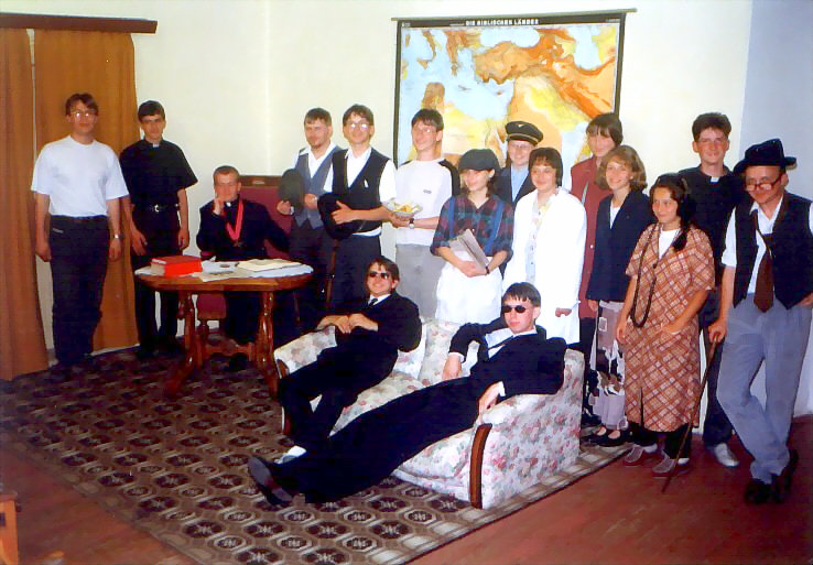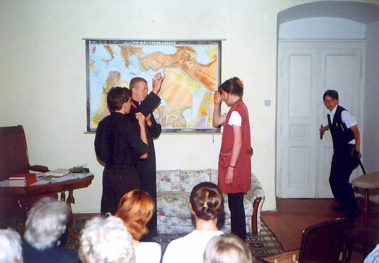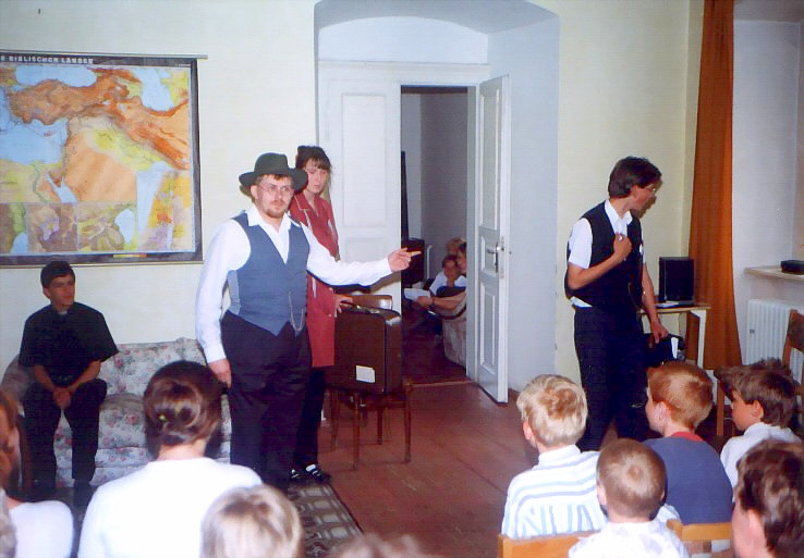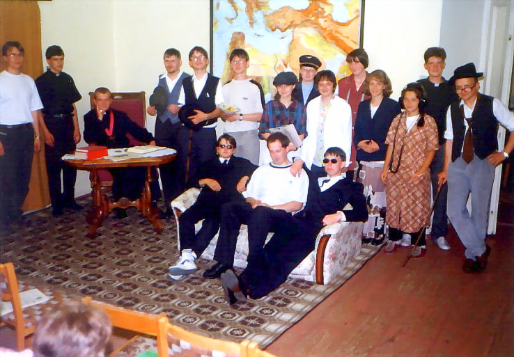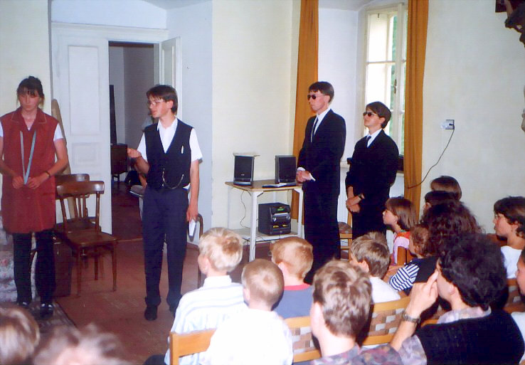 Vystoupení se konalo 29. června 1999. Hlavní postavu detektiva Revolvera hrál přední kostelecký cimrmanolog Vojta Kábrt. Za jeden večer jsme zvládli dvě představení. Muselo se trochu improvizovat, protože detektiv si zapoměl hlavní rekvizitu - špendlík - a zatímco se v zákulisí hledala, Revolver musel svou řeč natahovat, co to jen šlo.